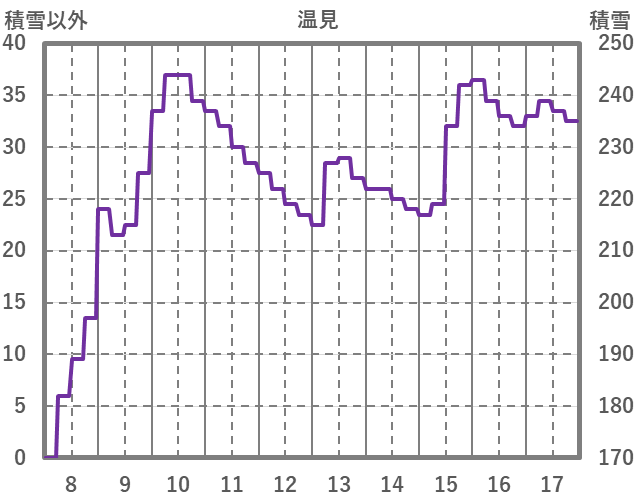 | 日 | 時 | 気温 | 降水 | 風向/風速 | 日照 | 積雪 | 降雪 |