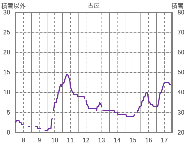 | 日 | 時 | 気温 | 降水 | 風向/風速 | 日照 | 積雪 | 降雪 |