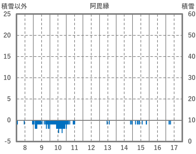 | 日 | 時 | 気温 | 降水 | 風向/風速 | 日照 | 積雪 | 降雪 |