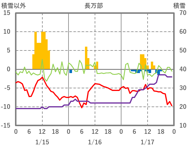 | 日 | 時 | 気温 | 降水 | 風向/風速 | 日照 | 積雪 | 降雪 |