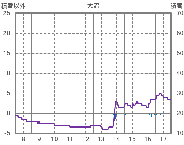 | 日 | 時 | 気温 | 降水 | 風向/風速 | 日照 | 積雪 | 降雪 |