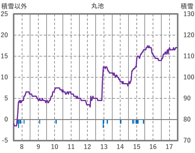 | 日 | 時 | 気温 | 降水 | 風向/風速 | 日照 | 積雪 | 降雪 |