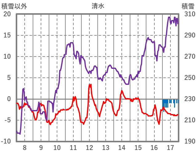 | 日 | 時 | 気温 | 降水 | 風向/風速 | 日照 | 積雪 | 降雪 |