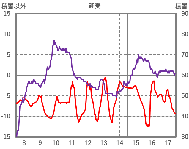 | 日 | 時 | 気温 | 降水 | 風向/風速 | 日照 | 積雪 | 降雪 |