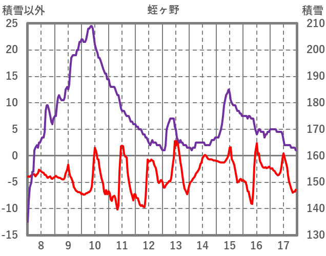 | 日 | 時 | 気温 | 降水 | 風向/風速 | 日照 | 積雪 | 降雪 |