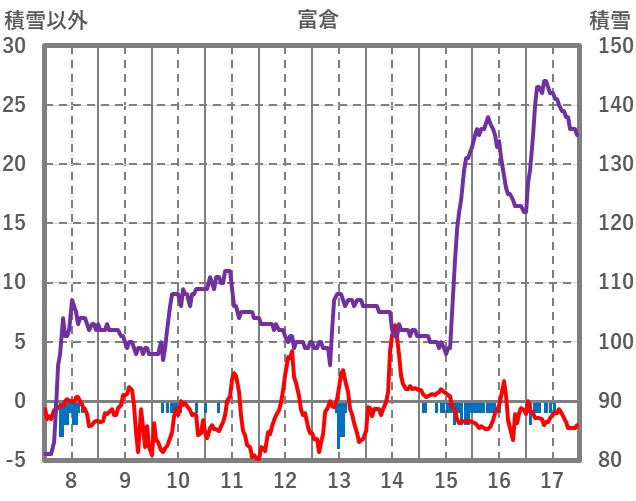 | 日 | 時 | 気温 | 降水 | 風向/風速 | 日照 | 積雪 | 降雪 |