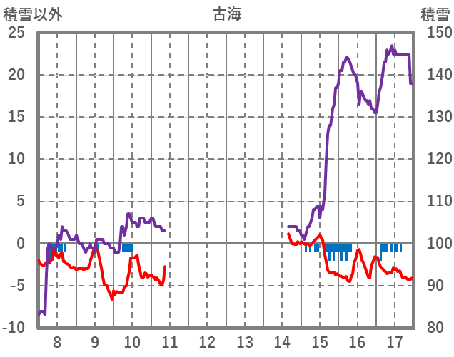 | 日 | 時 | 気温 | 降水 | 風向/風速 | 日照 | 積雪 | 降雪 |