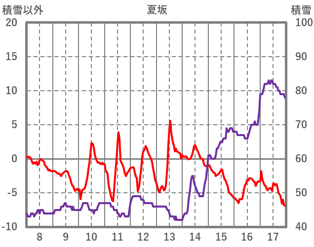 | 日 | 時 | 気温 | 降水 | 風向/風速 | 日照 | 積雪 | 降雪 |