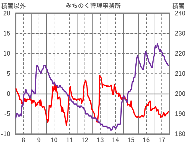 | 日 | 時 | 気温 | 降水 | 風向/風速 | 日照 | 積雪 | 降雪 |