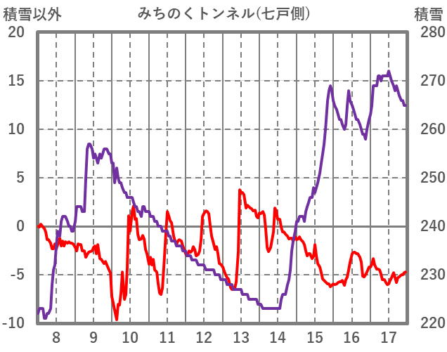 | 日 | 時 | 気温 | 降水 | 風向/風速 | 日照 | 積雪 | 降雪 |