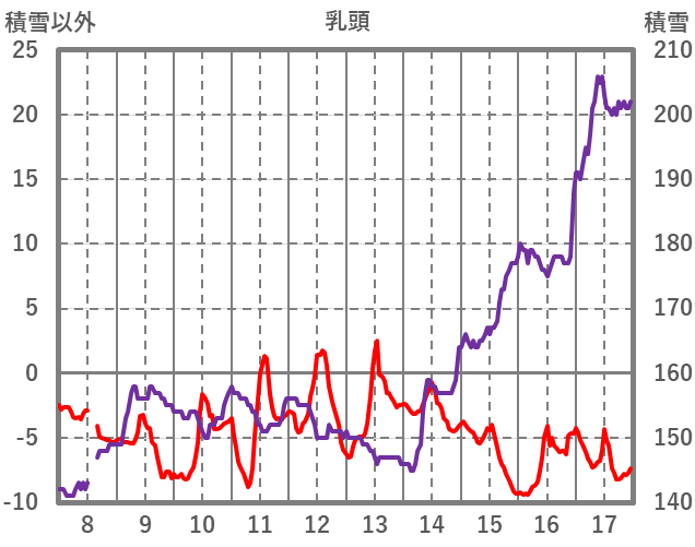 | 日 | 時 | 気温 | 降水 | 風向/風速 | 日照 | 積雪 | 降雪 |