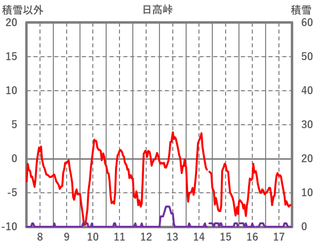 | 日 | 時 | 気温 | 降水 | 風向/風速 | 日照 | 積雪 | 降雪 |