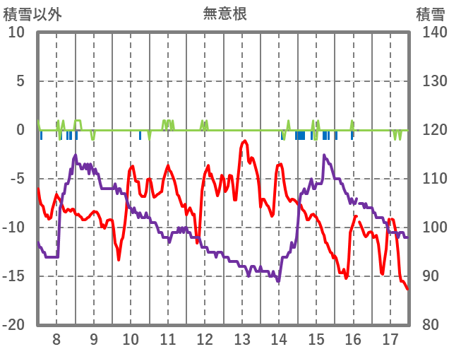 | 日 | 時 | 気温 | 降水 | 風向/風速 | 日照 | 積雪 | 降雪 |