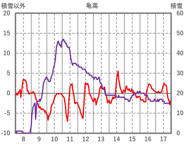 | 日 | 時 | 気温 | 降水 | 風向/風速 | 日照 | 積雪 | 降雪 |