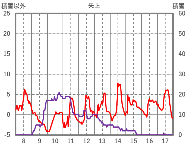 | 日 | 時 | 気温 | 降水 | 風向/風速 | 日照 | 積雪 | 降雪 |