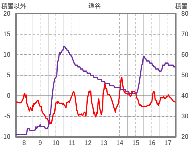 | 日 | 時 | 気温 | 降水 | 風向/風速 | 日照 | 積雪 | 降雪 |