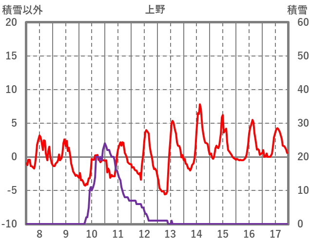 | 日 | 時 | 気温 | 降水 | 風向/風速 | 日照 | 積雪 | 降雪 |