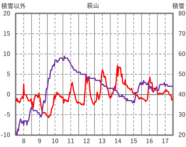 | 日 | 時 | 気温 | 降水 | 風向/風速 | 日照 | 積雪 | 降雪 |