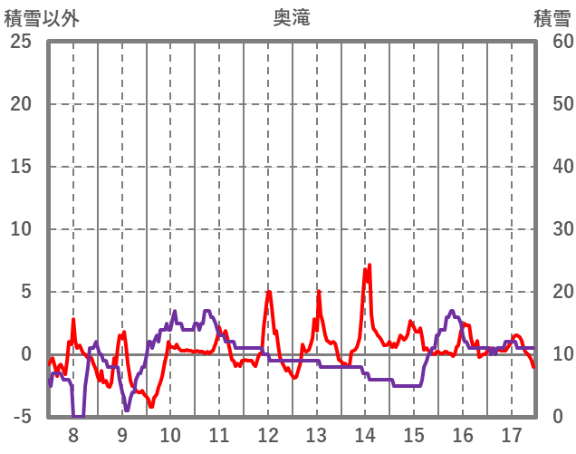| 日 | 時 | 気温 | 降水 | 風向/風速 | 日照 | 積雪 | 降雪 |