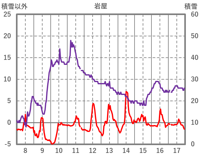 | 日 | 時 | 気温 | 降水 | 風向/風速 | 日照 | 積雪 | 降雪 |