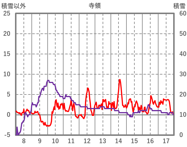 | 日 | 時 | 気温 | 降水 | 風向/風速 | 日照 | 積雪 | 降雪 |