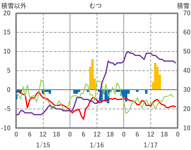 | 日 | 時 | 気温 | 降水 | 風向/風速 | 日照 | 積雪 | 降雪 |