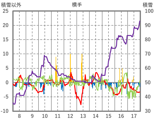 | 日 | 時 | 気温 | 降水 | 風向/風速 | 日照 | 積雪 | 降雪 |
