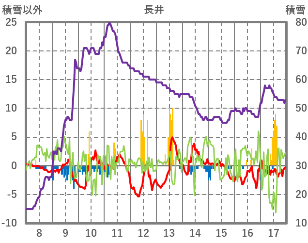 | 日 | 時 | 気温 | 降水 | 風向/風速 | 日照 | 積雪 | 降雪 |