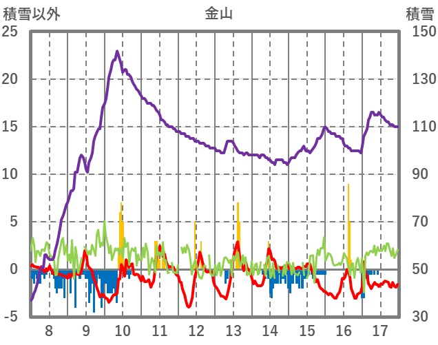 | 日 | 時 | 気温 | 降水 | 風向/風速 | 日照 | 積雪 | 降雪 |
