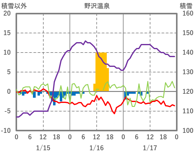 | 日 | 時 | 気温 | 降水 | 風向/風速 | 日照 | 積雪 | 降雪 |