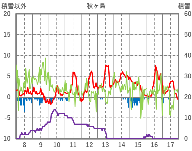 | 日 | 時 | 気温 | 降水 | 風向/風速 | 日照 | 積雪 | 降雪 |