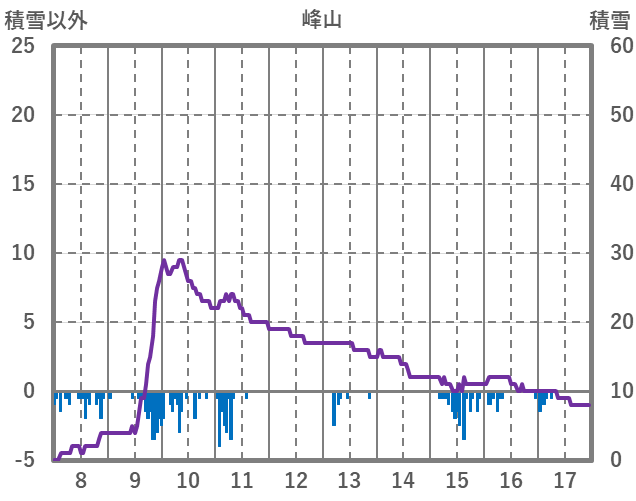 | 日 | 時 | 気温 | 降水 | 風向/風速 | 日照 | 積雪 | 降雪 |
