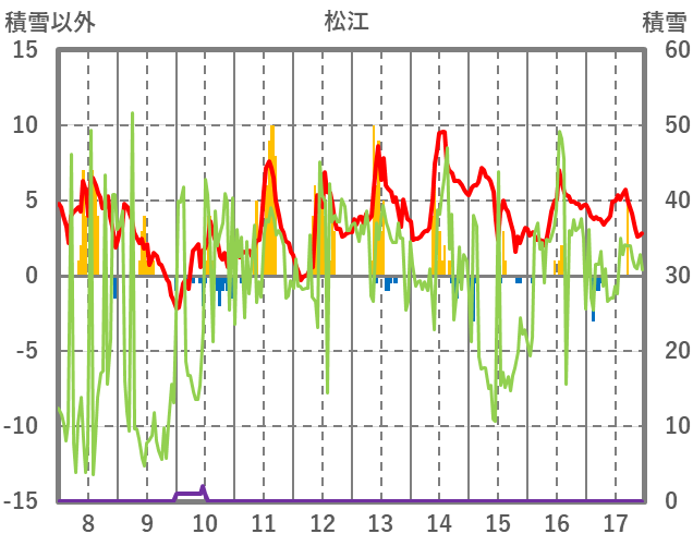 | 日 | 時 | 気温 | 降水 | 風向/風速 | 日照 | 積雪 | 降雪 |