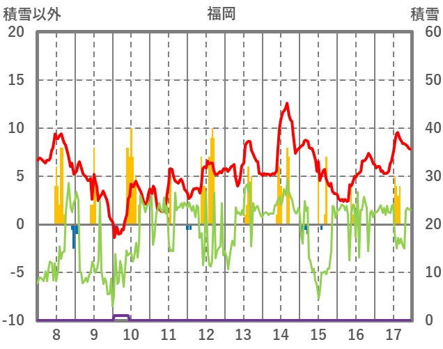 | 日 | 時 | 気温 | 降水 | 風向/風速 | 日照 | 積雪 | 降雪 |
