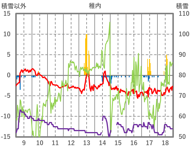 | 17 | -3.7 | 0.5 | NNW/9.5 | 0 | 55 | -1 | |