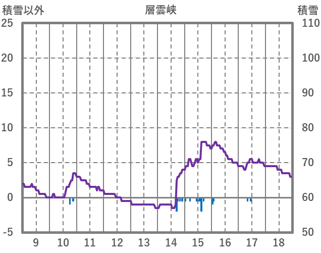| 日 | 時 | 気温 | 降水 | 風向/風速 | 日照 | 積雪 | 降雪 |