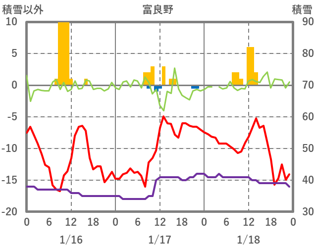 | 日 | 時 | 気温 | 降水 | 風向/風速 | 日照 | 積雪 | 降雪 |