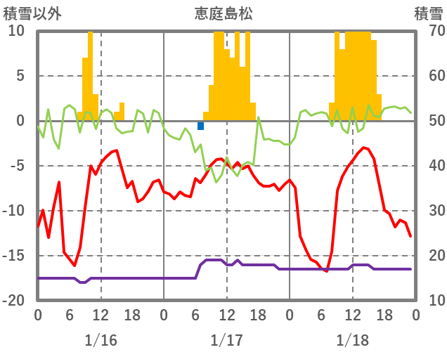 | 日 | 時 | 気温 | 降水 | 風向/風速 | 日照 | 積雪 | 降雪 |