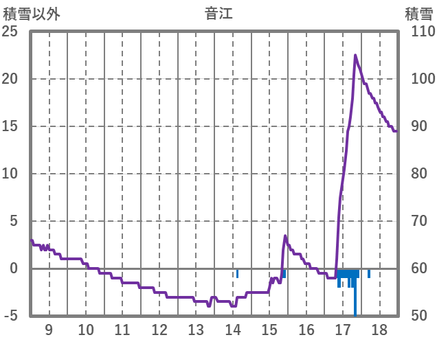 | 日 | 時 | 気温 | 降水 | 風向/風速 | 日照 | 積雪 | 降雪 |