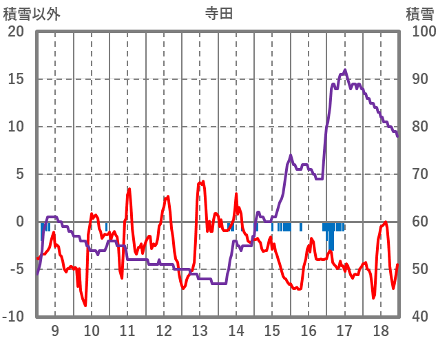 | 日 | 時 | 気温 | 降水 | 風向/風速 | 日照 | 積雪 | 降雪 |