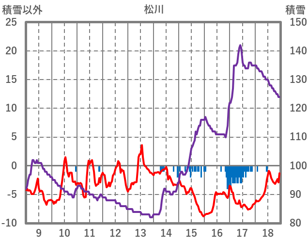 | 日 | 時 | 気温 | 降水 | 風向/風速 | 日照 | 積雪 | 降雪 |