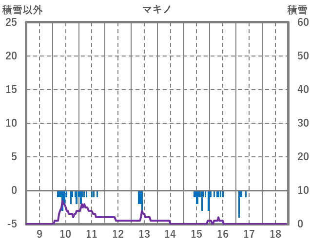 | 日 | 時 | 気温 | 降水 | 風向/風速 | 日照 | 積雪 | 降雪 |