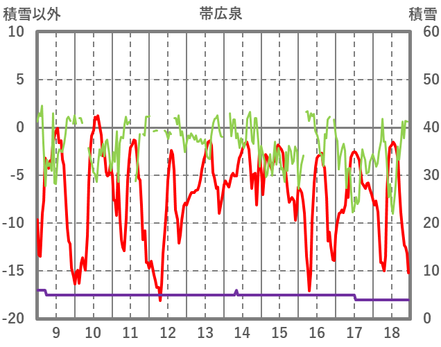 | 日 | 時 | 気温 | 降水 | 風向/風速 | 日照 | 積雪 | 降雪 |