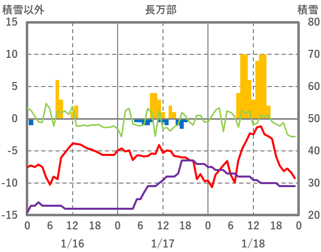 | 日 | 時 | 気温 | 降水 | 風向/風速 | 日照 | 積雪 | 降雪 |