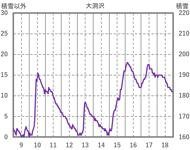 | 日 | 時 | 気温 | 降水 | 風向/風速 | 日照 | 積雪 | 降雪 |