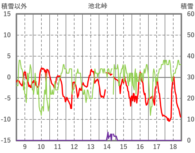 | 日 | 時 | 気温 | 降水 | 風向/風速 | 日照 | 積雪 | 降雪 |