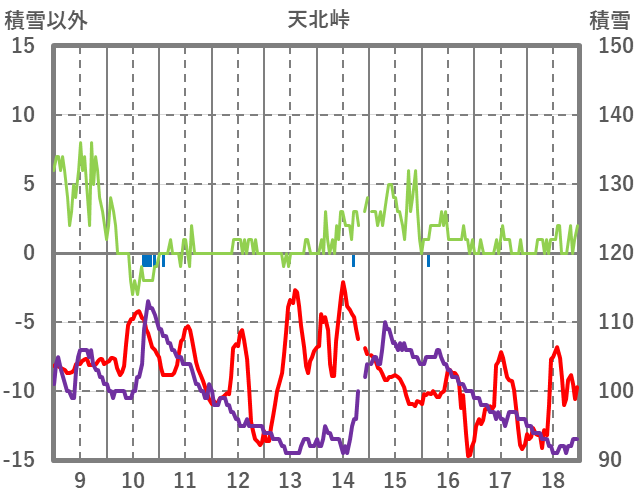 | 日 | 時 | 気温 | 降水 | 風向/風速 | 日照 | 積雪 | 降雪 |