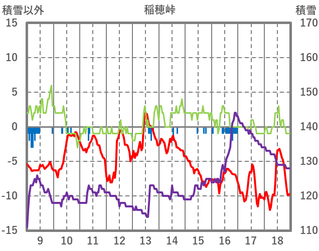 | 日 | 時 | 気温 | 降水 | 風向/風速 | 日照 | 積雪 | 降雪 |