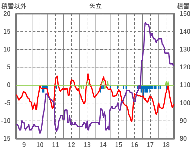 | 日 | 時 | 気温 | 降水 | 風向/風速 | 日照 | 積雪 | 降雪 |