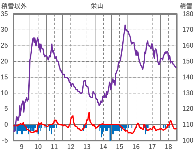 | 日 | 時 | 気温 | 降水 | 風向/風速 | 日照 | 積雪 | 降雪 |